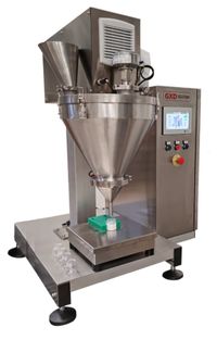 Dosificador de polvo de sobremesa, para envases de boca abierta. Control de dosificación por peso mediante célula de carga.