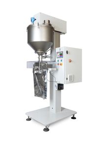 Dosificador de polvo, con soporte para bolsa preconfeccionadas. Control de dosificación por peso mediante células de carga.